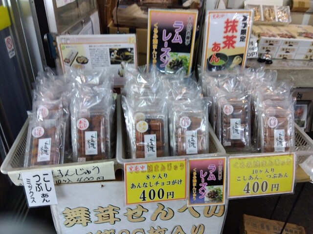 おすすめのくるみまんじゅうを購入しました。餡の種類が選べます。試食もあって、とってもユニークな店員さんとおしゃべりしながら、舞茸せんべいを試食しました。