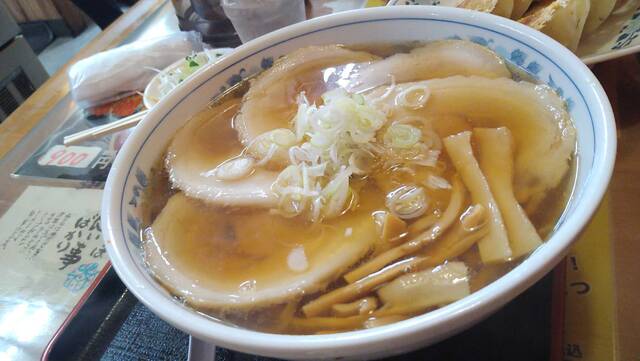 私はチャーシュー醤油ラーメンを注文。水餃子、焼餃子、もつ煮等もプラス。