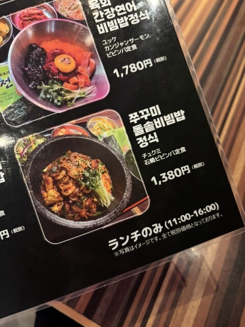 ・チュクミ石焼ビビンパ定食 ¥1,380円(税別)