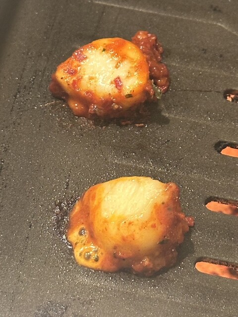 モッツァレラチーズとトマトのキムチは一緒に食べるとまるでカプレーゼ。鉄板で少し焼くと柔らかくなって、ビヨーンと伸びる!うまうますぎた!