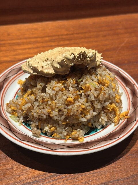 蟹の甲羅が乗った贅沢すぎる炒飯♪