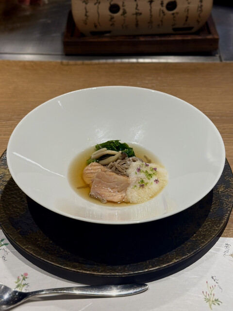 ️鮭からゆずの香りがしたような気がします!ととろろを蕎麦とよく絡めて頂きました!鉄板焼きコースではあまり見かけない珍しめの逸品??
