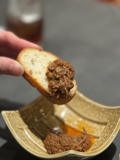 わさびやガーリックチップをつけたり黒胡椒をのせたり、何口目でも飽きがこない。