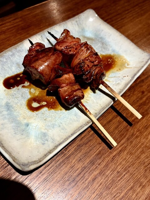 焼鳥は全体的にレベルが高く、特に最初に出てきた「かしわ(塩)」が印象的でした。外は香ばしく、中はふっくらジューシー。塩加減がちょうどよく、素材の旨みがしっかり立っていて、お酒が自然と進む一串です。