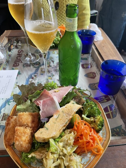 平日のお昼。お天気がよいので、お外が見えるこちらに。窓際のお席で乾杯。18時までのオーダーでしたらボトルワイン20%オフなので、スパークリングを1本。シュワシュワ最高です!ワインクーラーのおかげで、最...