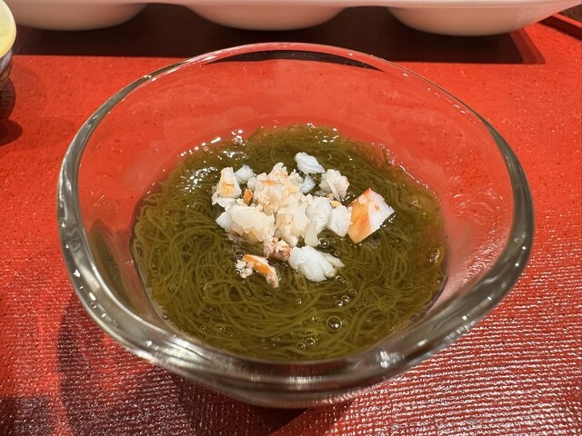 ご飯に濃厚出し汁で生青さ海苔を 次に•••••