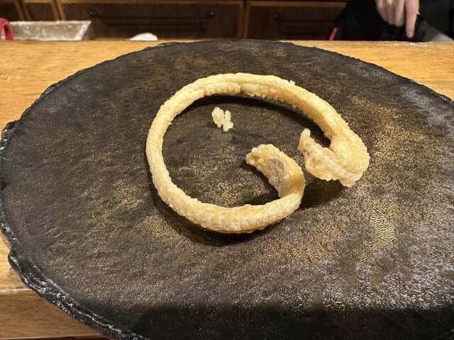 天ぷらの衣となる粉に濃厚出し汁で伸ばし衣自身が美味しい一品ですね
