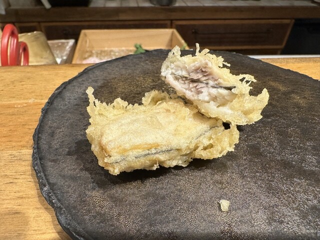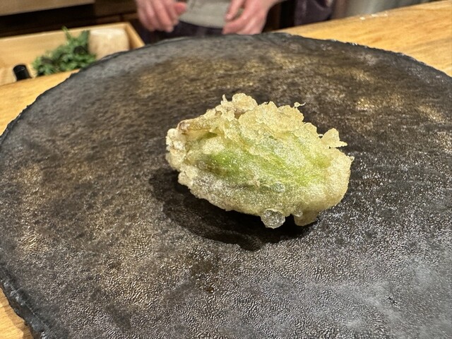 途中で筍を軽く醤油漬けにして天ぷらで頂いたのですが土の中の物なので刺身で頂ける逸品なのですが天ぷらで食べる贅沢にも出会え口福です♪