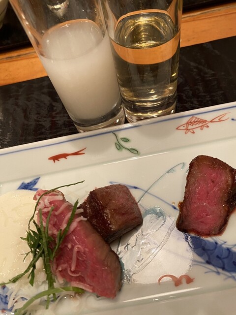 さっぱりした野菜料理に米沢牛の軽い炙りは