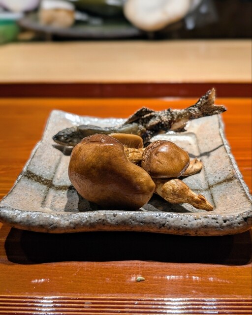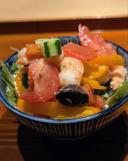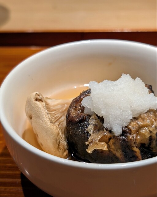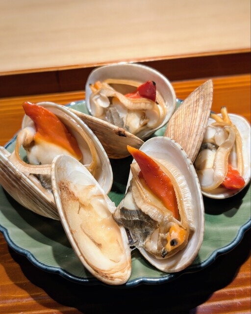 ピンチョスに使われてた半導体メーカーの作ってるトマトや、しし唐かインゲンにみえる青い大根(莢大根)といった大将こだわりの食材が使われていて、新たな発見をくれる✨
