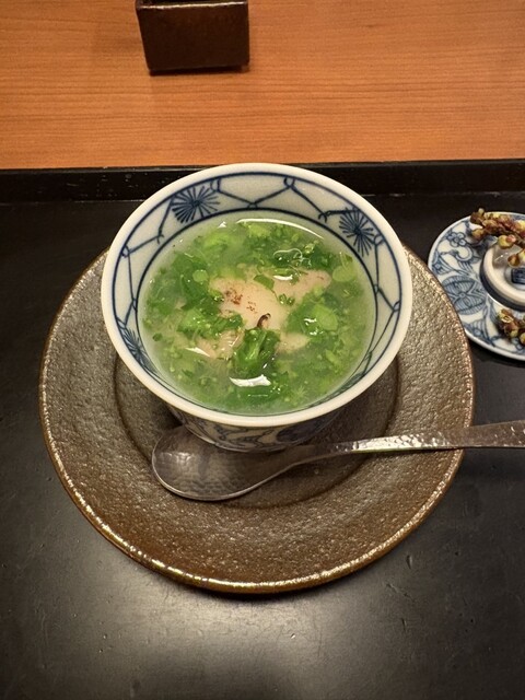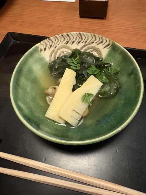 今の時期しか採れない生わかめは火に通すと鮮やかな緑に!お出汁も優しいお味で、食材の味が引き立つ一品でした!