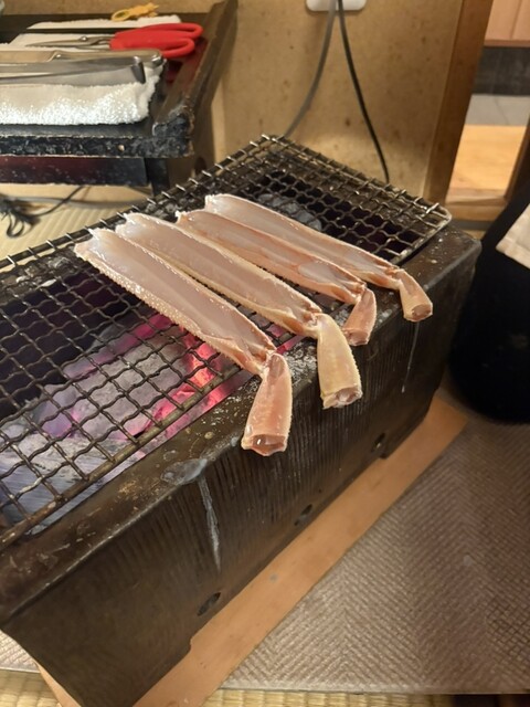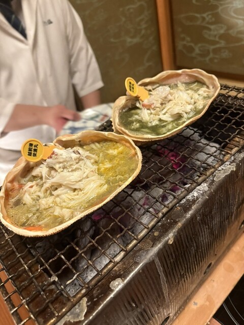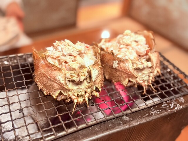 普段はあまり食べようと思わない焼きガニ。七厘で焼き上げた蟹。塩で頂きました!ビックリです!美味しかったです!!