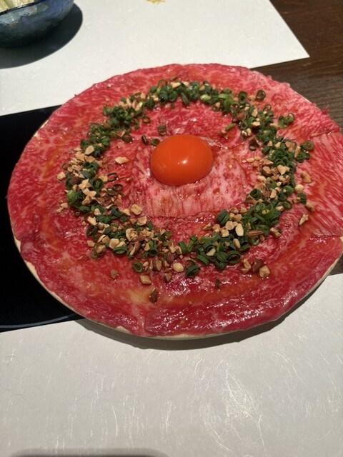 プラチナユッケ、王様ユッケ、ハラミ握り、肉の魔球(握り)、タンてっさ、大トロ刺し、白センマイ刺し、レバーの溶岩焼き、30日熟成舌串、30日熟成極上舌串。