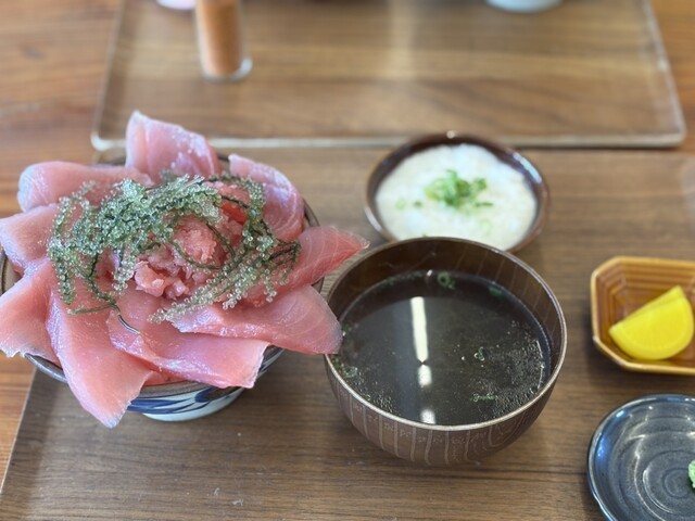 一口では食べられないほど大きなマグロ切り身がどっさり入っていて