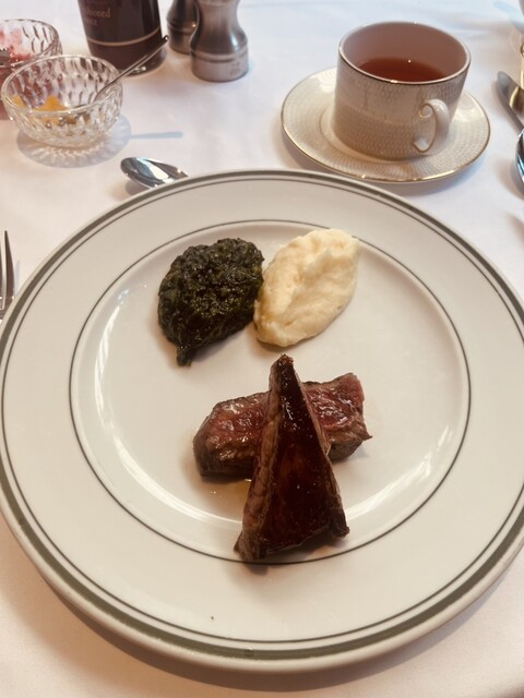 乾杯のシャンパン、セイボリー、お肉、ケーキ類、スコーン、飲み物類