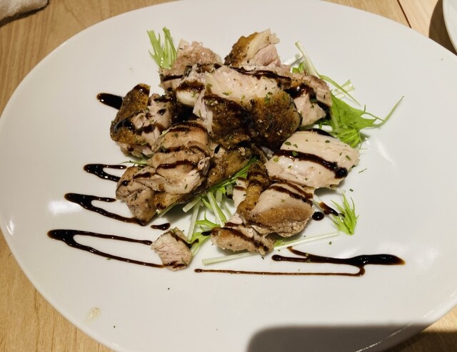 お出汁のトマトの前菜とお出汁のアヒージョが美味しかったです。和風イタリアンという感じ。