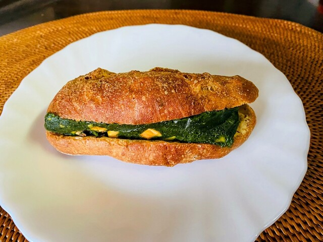 「ピスタ」…くるみパンに濃厚なピスタチオクリームがサンドされていてクラッシュピスタチオの食感が楽しく絶品でした♡これは次回もリピ決定♪