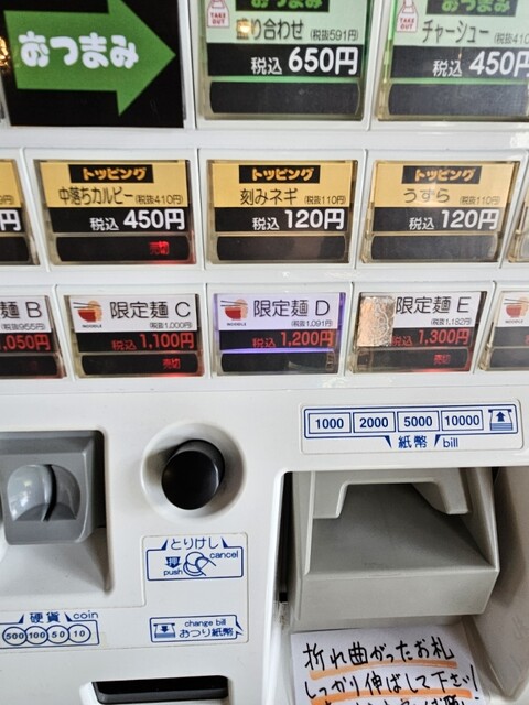 券売機 プレミアム木桶巴醤油鶏醤油らぁ麺は限定麺E