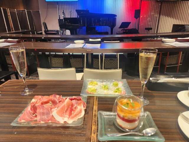 平日の夜18:00、シアター席(LIVE前の横並びのカウンター席)が好きなのですが、テーブル席は満席でしたが、横並びのシアター席は誰もおらず独占、真ん中のソファー席で音楽を楽しみながら、美味しい食事とお酒でした。