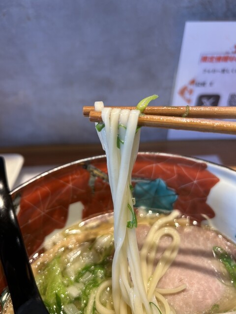 スープ表面に多め油が見えます。あっさりした塩ラーメンではありません。