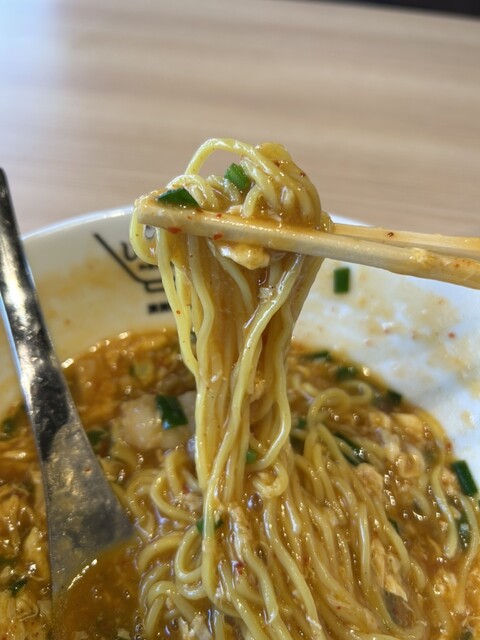 麺はもちもち中のストレートで、とろみがついた熱々スープとからみ美味です。