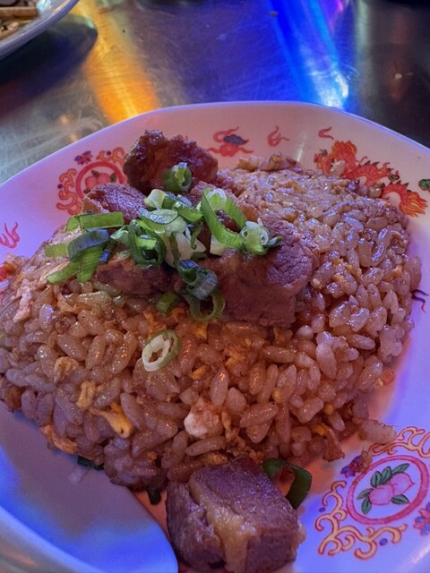 黒チャーハンはしっかり濃いめの味付けでお酒の〆に最適。