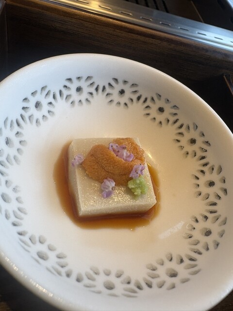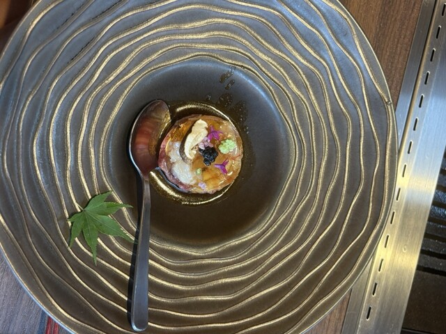 和牛の昆布〆。じっくり火を入れた赤身肉。塩の旨味が程よく染み込み、赤身の美味しさを存分に楽しめました。塩がかなりひきたつ美味しさ。