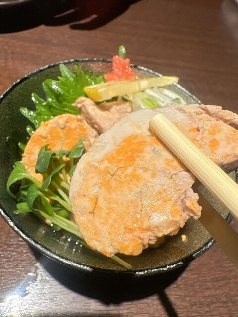 まずは真鯛の白子ポン酢。クセがなく、とろりとした口当たりで、最初の一皿から日本酒が進みます。