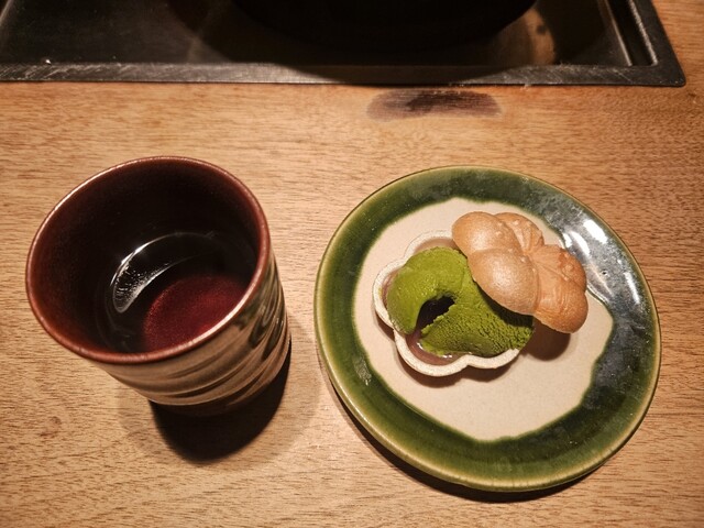 デザートにはほうじ茶と共に抹茶アイス最中!