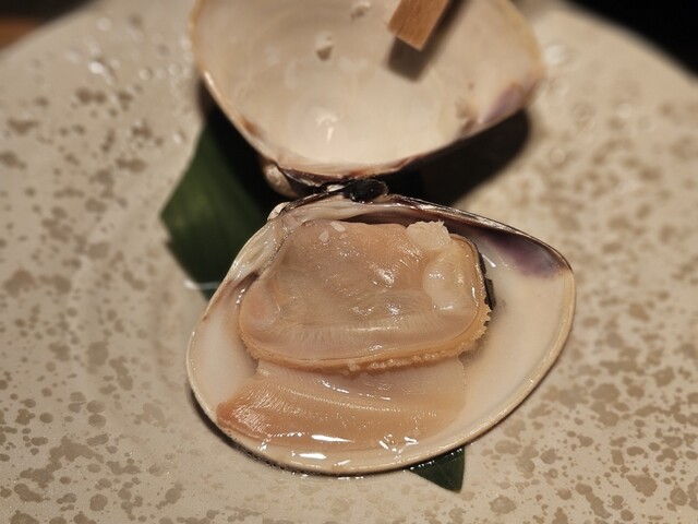 お造りを楽しんでいると、大粒のはまぐりがズラリと並べられ目の前に運ばれてきて「今日は良い大きなはまぐりが御用意出来たのですが追加で焼きはまぐりで如何でしょうか?」ときたもんで、これを見せられて断れる人がいる?と即追加。全く商売上手だなと話していると先だって