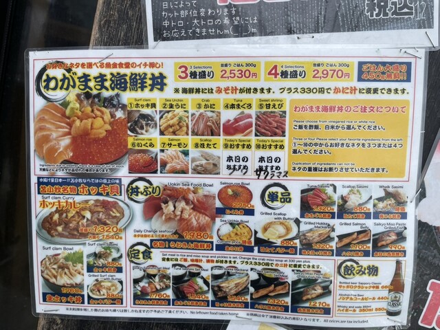 近隣の店に行く予定でしたが、長蛇の列で諦めてここのお店に来ました。昼時に一組待ちで少し不安を感じていましたが、「名物!うおきん海鮮丼」(1,980円)を食べた瞬間に不安は一掃されました。