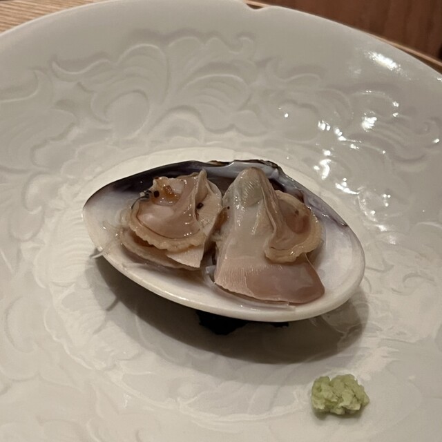 蛤の旨みとソースがよく絡んで美味しいです。わさびをつけるとさらに蛤が引き締まります。