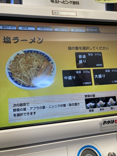 野菜マシマシニンニクマシマシ、脂少なめ味濃いめナシ980円