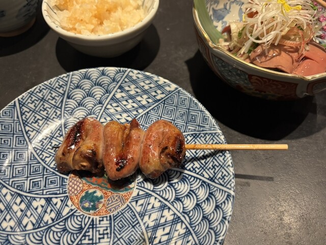 どれも美味い。火の通り方がちょうどいい。皮はパリッと。ささみはふわふわ。ハツ、つくねはとてもジューシー。耐えられずワイン2杯目。
