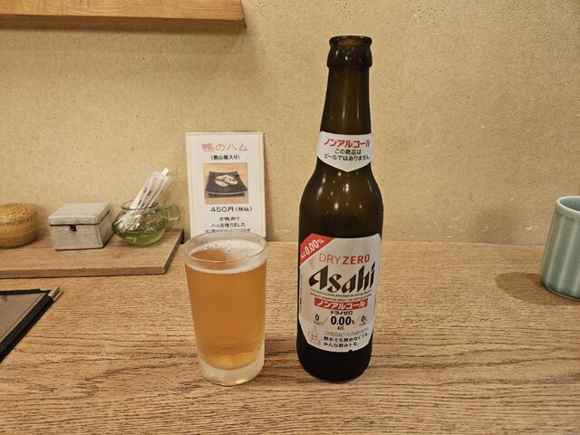 私が注文したのは「もりそば」「鴨のハム(実山椒入り)」「ノンアルコールビール」です。