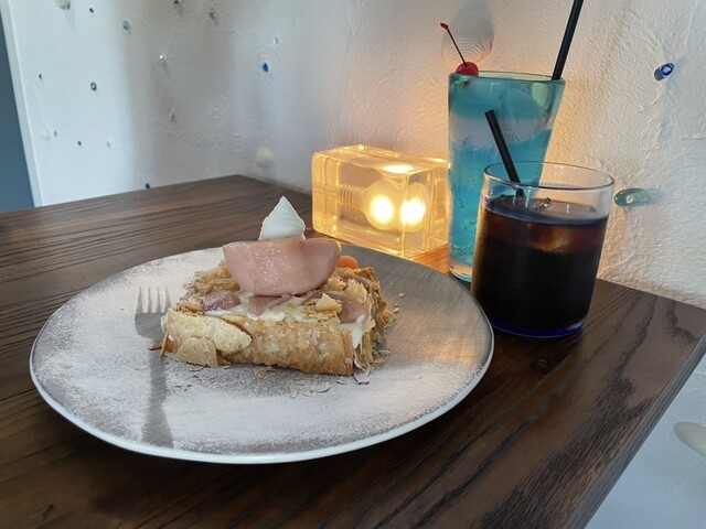 桃のナポレオンパイ&クリームソーダ&アイスコーヒー