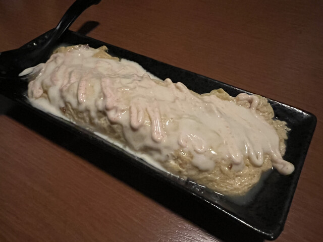綺麗に長細くフワトロ卵に明太チーズがたっぷりかけられていて、温かく美味しいです。シェアすると皆ハッピーになりますね。