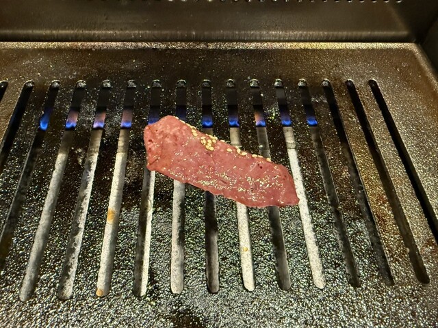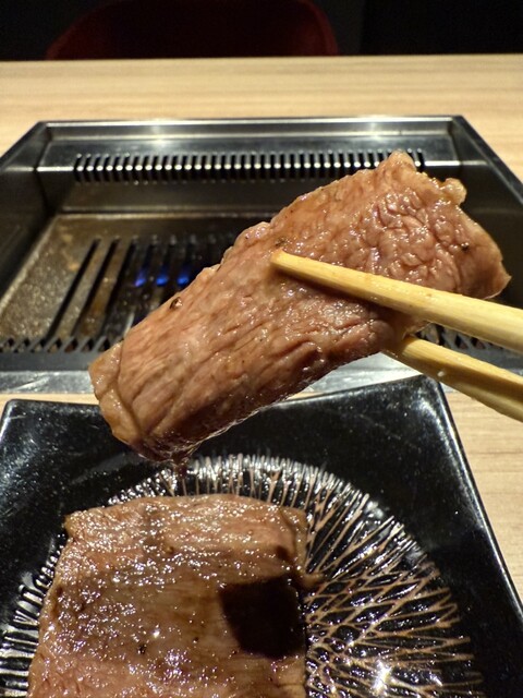 とろけるように柔らかく、食感はミスジより少し感じる程度ですが噛むごとに旨味が口の中で広がります。タレを付けて頂きました。