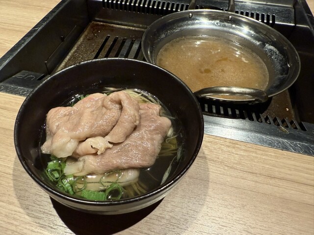 鉄板の上でしゃぶしゃぶは珍しく初めてみました。柔らかく滑らか食感で出汁とネギとの相性も最高です。