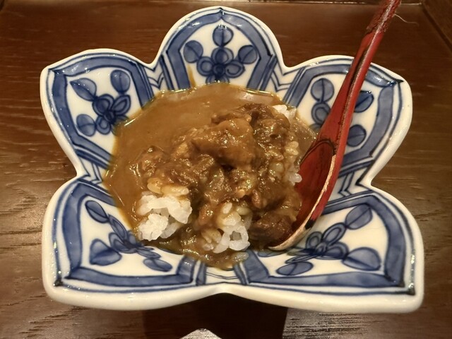 ・〆は贅沢に牛すじカレーで、スパイスと肉のコクがフィナーレを飾りお腹がパンパンになりました。