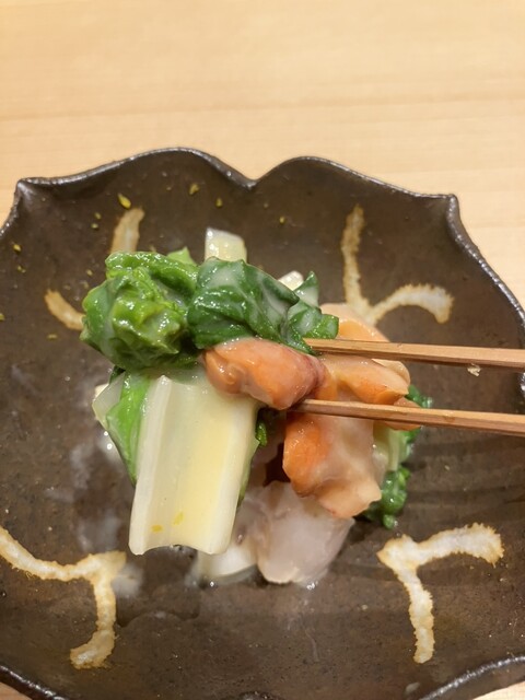 春野菜のうるいと、酢味噌ドレッシングが合います。