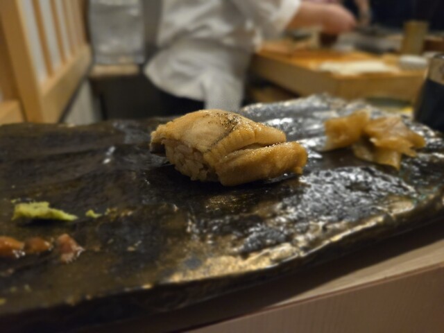 握るマスターはいつも一人だけで、創作の握りや逸品が素晴らしい。毎度季節や仕入れによってメニューが変わり、いつ来ても飽きも全くしない。