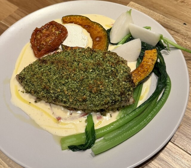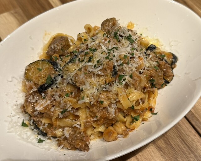 特に心に残ったのは白子のフレッシュさ・牛肉の煮込みの美味しさ・魚の香草焼きが、外はパリっと、身はみっちりしてるところ・付け合わせのグリルされたかぼちゃの美味しさ・揚げ茄子の美味しさ・ピザの生地とパスタのもちもち感...