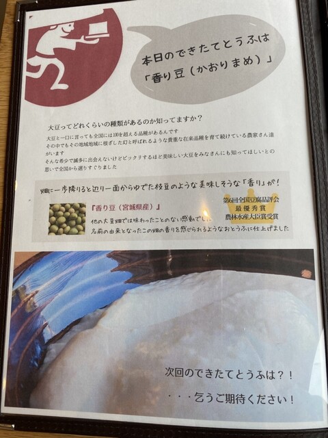 メニューは迷いに迷い、できたて豆腐御膳(特別)を注文!そしてTKG用に卵も追加!