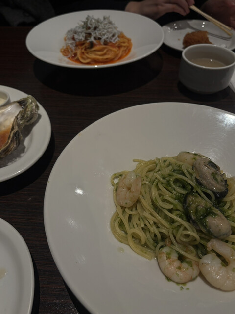 生牡蠣はもちろん美味しかったのですが(同行者のオイスターソースのものをいただきました。)、青のりのパスタも美味しかったです。ペペロンチーノのような味わいでした。