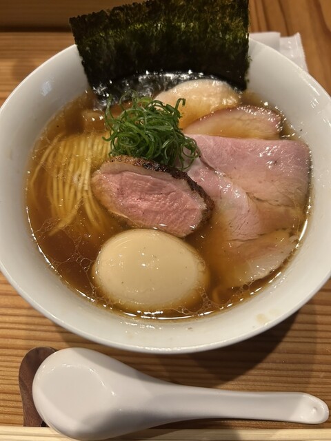 また広島のお店です。広島市南区にある、めん 呼白さん。少々わかりづらい立地のお店で、雨も降っていたのにも関わらず、30分ほど待っての入店でした。期待に胸を膨らませながら特上醤油をプッシュ。特上醤油には、四種のお肉、味玉、ネギ、海苔がトッピングされています。着丼までの間にカウンター上の紙を読んでいると、厳選した醤油、自家製麺はもちろんのこと、スープの香りを引き立てるためにメニューによって異なる有田焼の器を使うほどのこだわりっぷり。着丼してまずスープを飲みます。鶏ベースの香り高い醤油スープが、寒い中待って冷えた体に沁みていきます。麺は滑らかな細麺で、そうめんのように(例えが合っているか分かりませんが)ちゅるちゅるとすすれるもの。四種のお肉は、鴨、バラ肉、肩ロース、鶏胸肉で、どれも感動的に美味しかったです。お肉ご飯も食べればよかったー。行列必至ですが、雨の中待ってでもまた行きたいお店です。広島に行った際はぜひ。