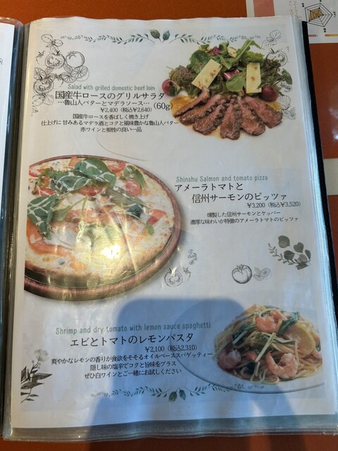 マルゲリータピザ1,925円とパルティノベ1,815円(トマトクリームソースのベーコンとナスのパスタ)を注文!