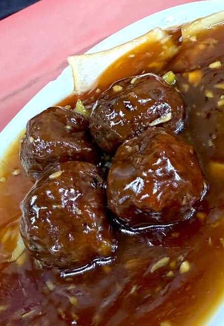 休日は大盛況だと思ったので、平日にお邪魔した。前回は1年前。開店40分前に到着したけど先頭だった。薄曇りで直射日光もなく暑かったけど、何とか耐えれた。今回もお目当ては酢鶏。それとなかなかレビューに出てこない肉団子。入店後に確認したら、時間はかかるけど出来ますと言って頂いたのでお願いした。あと塩台湾のちょい辛と炒飯。酢鶏はコメントの必要もなく絶品。肉団子も同じ甘酢ですよと教えて頂いていたが、こちらはトロみのある餡でしっかりニンニク。酢鶏大好きだったけど、肉団子も負けてない。相棒が言うには塩台湾も絶品らしく、しばらく塩で行くらしい。今回は五郎さんの席に案内してもらえたし、相変わらずの美味しさとお店の活気に大満足。