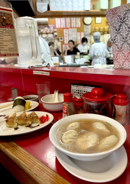 伊勢志摩散歩のラストはずっと行きたかった美鈴さんへ。平日だったが、念のため開店直後にお邪魔した。15:00過ぎで半分くらいの席は埋まってて、16:00前にはほぼ満席状態。餃子と水餃子、唐揚げ小とおにぎり、おでんの大根をお願いした。食べる前からお店の雰囲気、仕事ぶりでテンションは上がる。餃子は写真で見ていたより、カリカリで熱々。