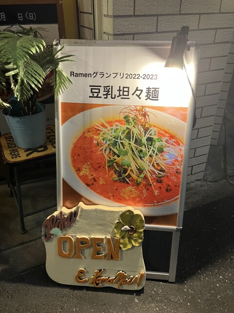 池袋でハワイのカフェのような店内で食べる豆乳担々麺チーズリゾットセット+塩味玉♪